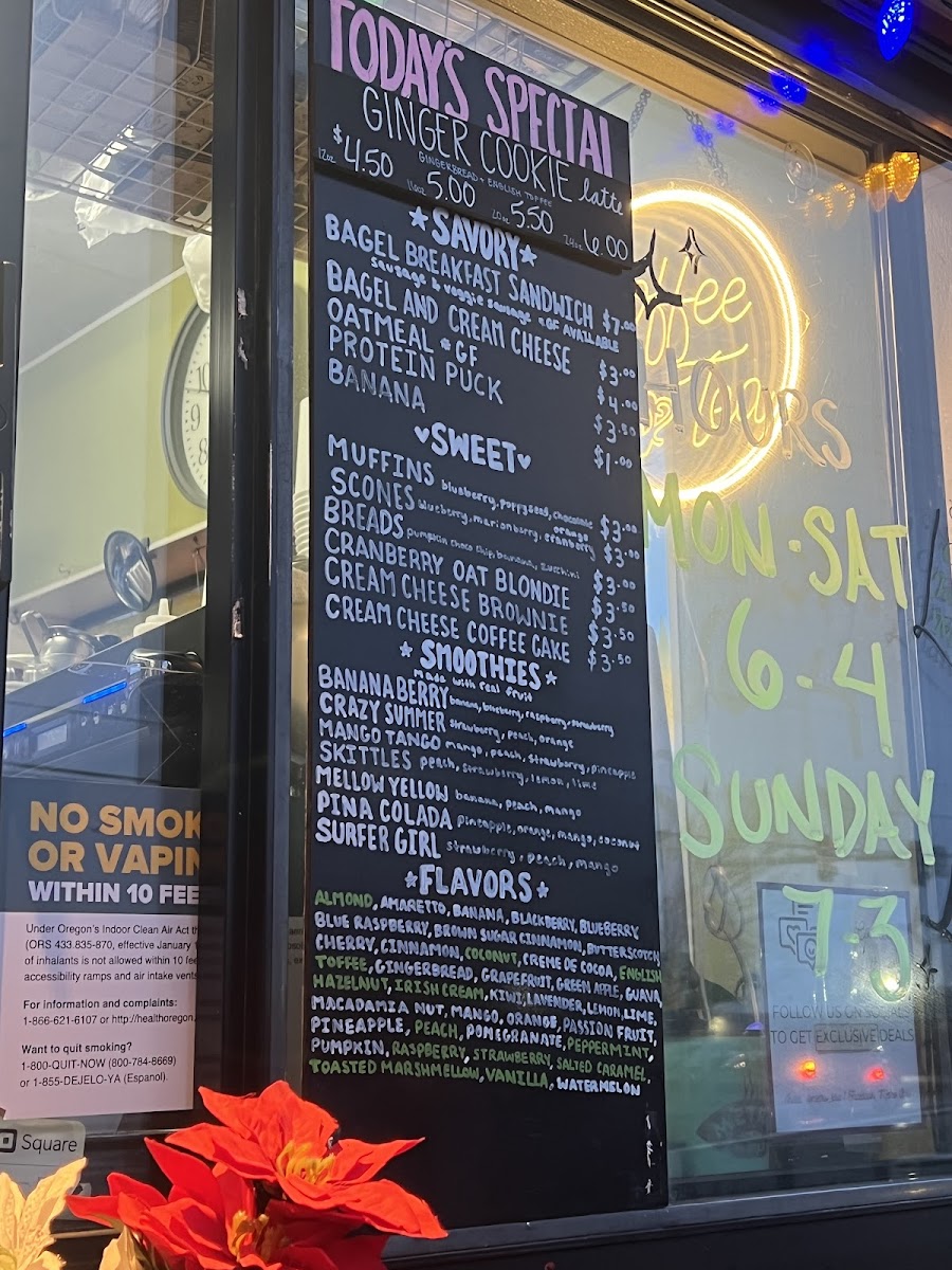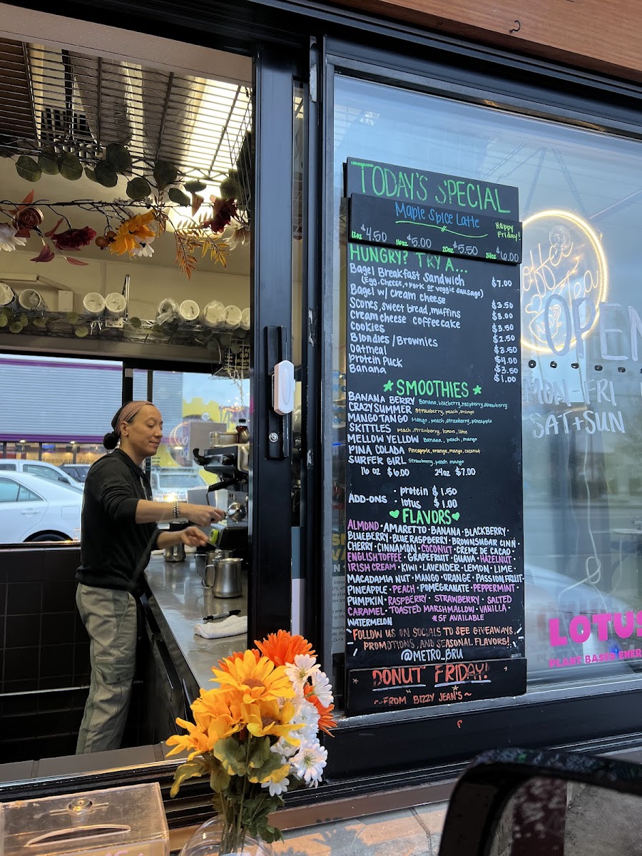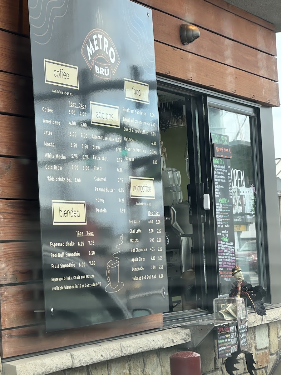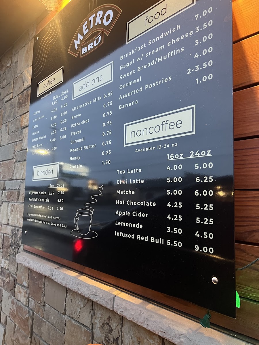 The menu at Metro Bru offers a variety of beverages and food options that cater to a wide range of tastes. For drinks, you can enjoy options like the Accelerator, Apple Juice, and AmericanoBreve. If you're in the mood for something more classic, try a Café au Lait. The coffee shop also caters to kids with Kids Drinks, and they offer customizable milk alternatives such as Soy, Oat, or Breve, along with a range of syrup choices including Almond, Coconut, and HempHard Caramel, and flavors like P.B. or White Chocolate. On the food side, there's a selection of comforting baked goods, including Gluten Free Scones and Vegan Coffeecake, ideal for those with dietary preferences. For something more filling, the menu features Umpqua Oatmeal and Yogurt/Granola, providing a healthier start to the day.